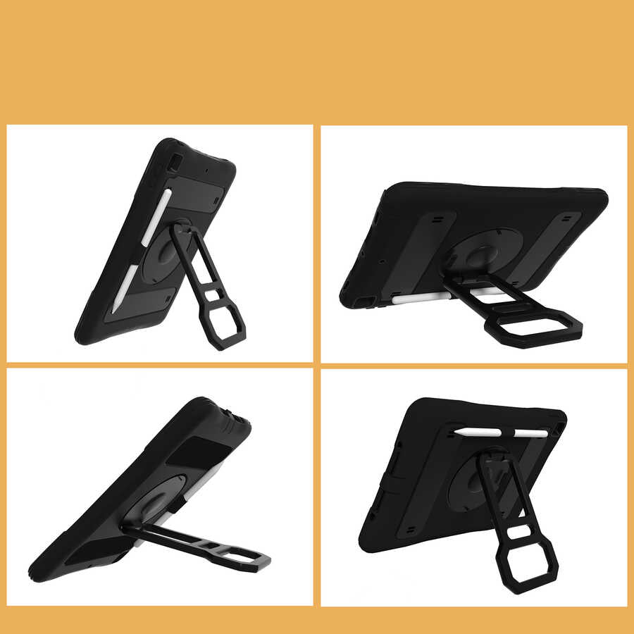 Apple iPad 10.2 2021 (9.Nesil) Zore Yeni Nesil Kalem Bölmeli Defender Tablet Silikon Siyah