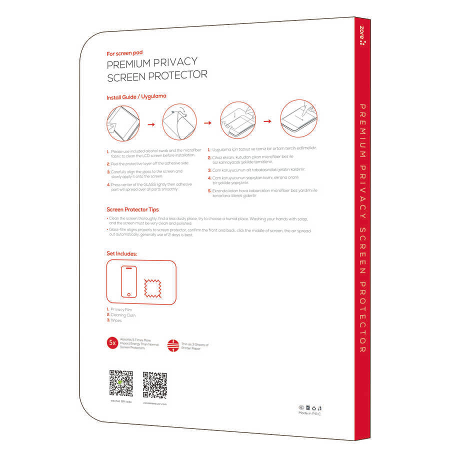 Zore Tablet Privacy Temperli Ekran Koruyucu
