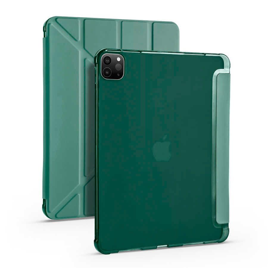 Apple iPad Pro 12.9 2021 (5.Nesil) Kılıf Zore Tri Folding Kalem Bölmeli Standlı Kılıf Koyu Yeşil