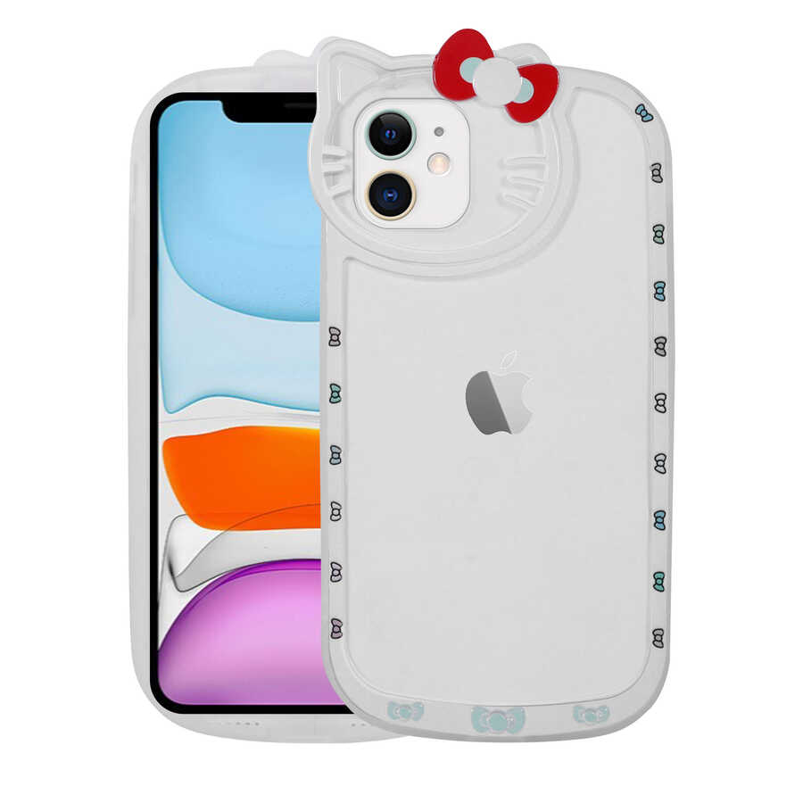 Apple iPhone 11 Kılıf Kedi Figürlü Transparan Sert Silikon Zore Kity Kapak Beyaz