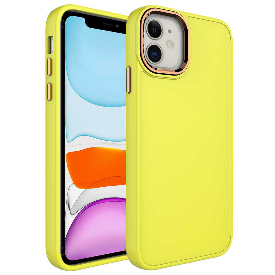 Apple iPhone 11 Kılıf Metal Çerçeve ve Buton Tasarımlı Silikon Zore Luna Kapak Sarı