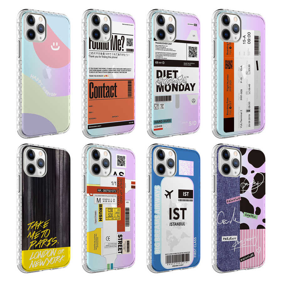 Apple iPhone 11 Pro Max Kılıf Airbag Kenarlı Renkli Desenli Silikon Zore Elegans Kapak NO4