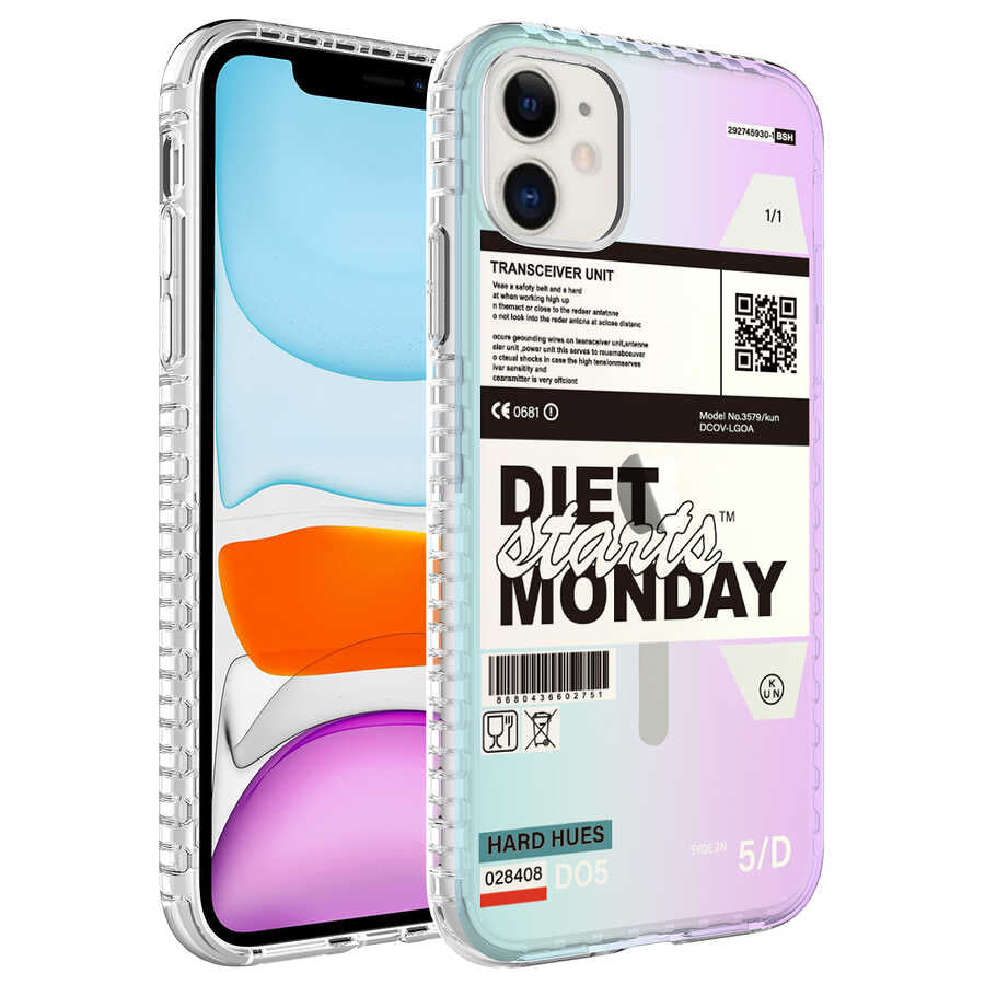 Apple iPhone 12 Kılıf Airbag Kenarlı Renkli Desenli Silikon Zore Elegans Kapak NO5