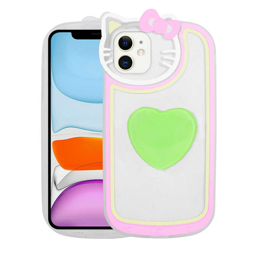 Apple iPhone 12 Kılıf Kedi Figürlü Transparan Pop Soketli Zore Ritmik Kapak Yeşil