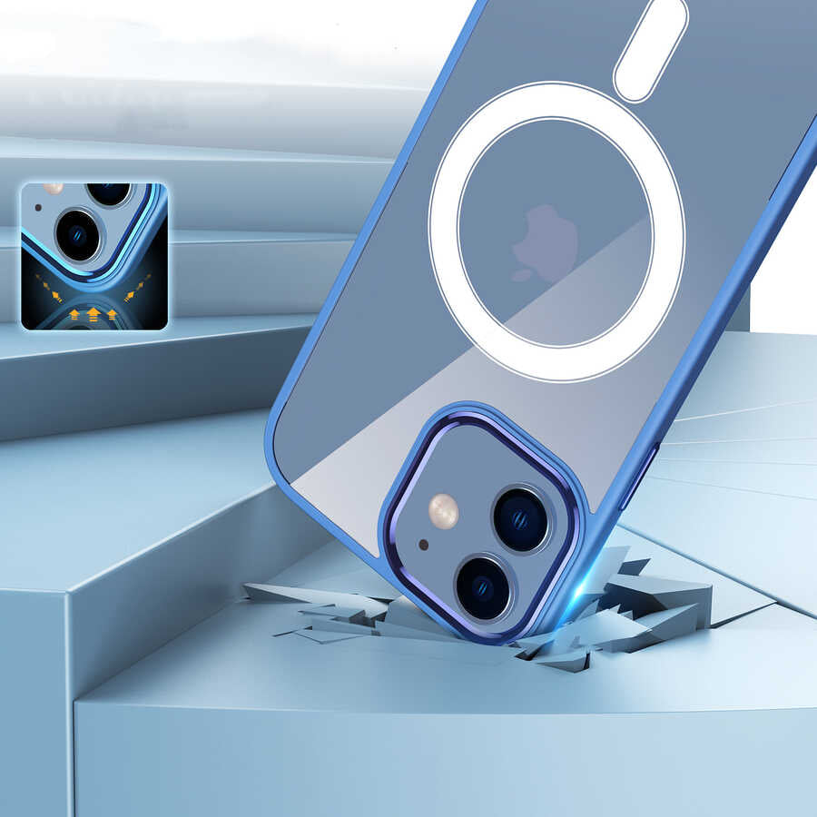 Apple iPhone 12 Kılıf Wireless Şarj Özellikli Zore Krom M-safe Silikon Kapak Mavi