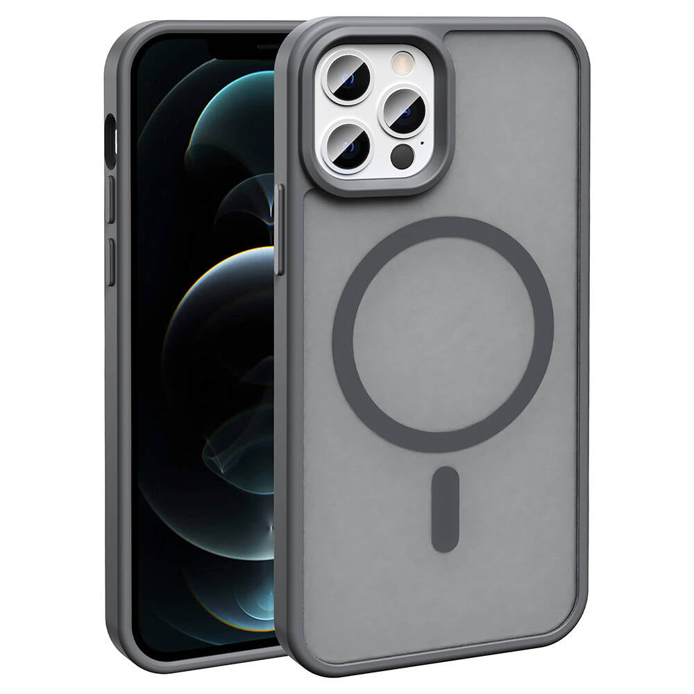 Apple iPhone 12 Pro Kılıf M-safe Şarj Özellikli Mat Arka Yüzey Zore Sio Kapak Gri