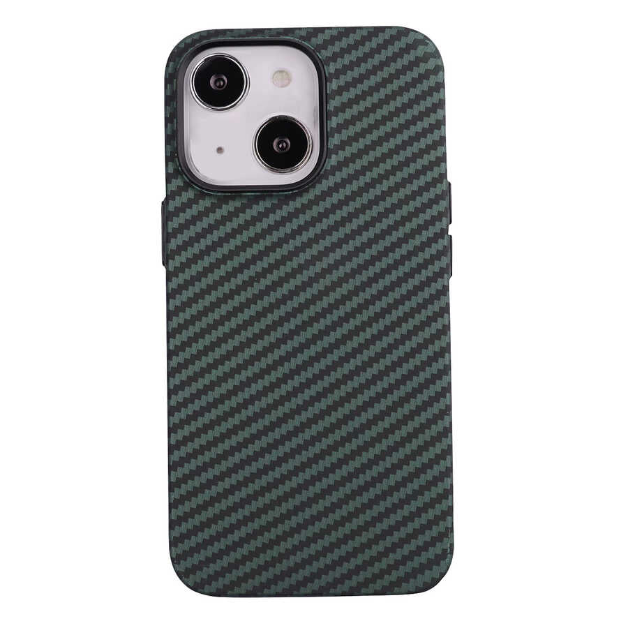 Apple iPhone 13 Kılıf Karbon Fiber Tasarımlı Zore Karbono Kapak Koyu Yeşil
