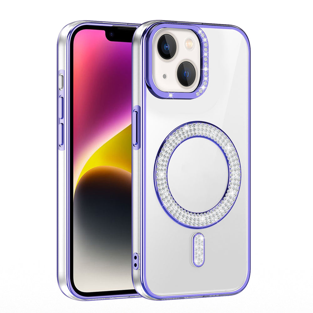 iPhone 13 Kılıf Pırlanta Taş Tasarımlı Magsafe Şarj Özellikli Zore Karetta Silikon Kapak