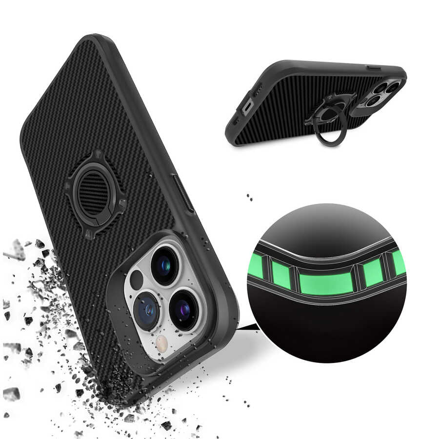 Siyah karbon fiber görünümü ile şık ve göz alıcı bir tasarım