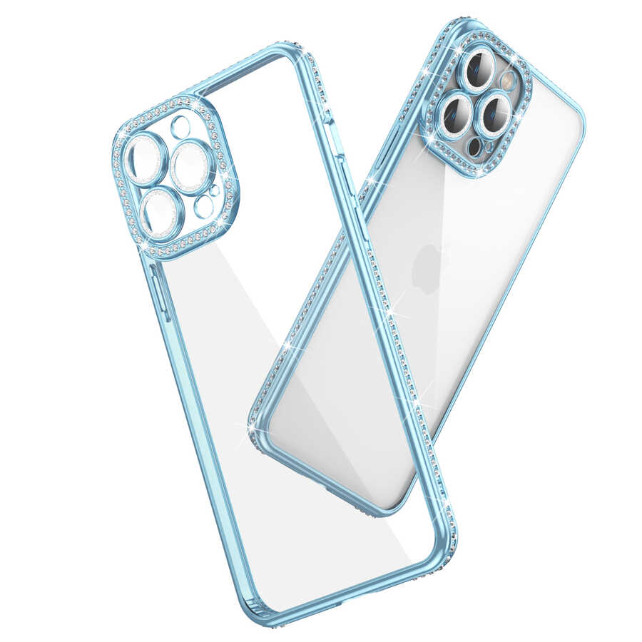 Apple iPhone 13 Pro Max Kılıf Kamera Korumalı Taşlı Zore Mina Kapak Mavi