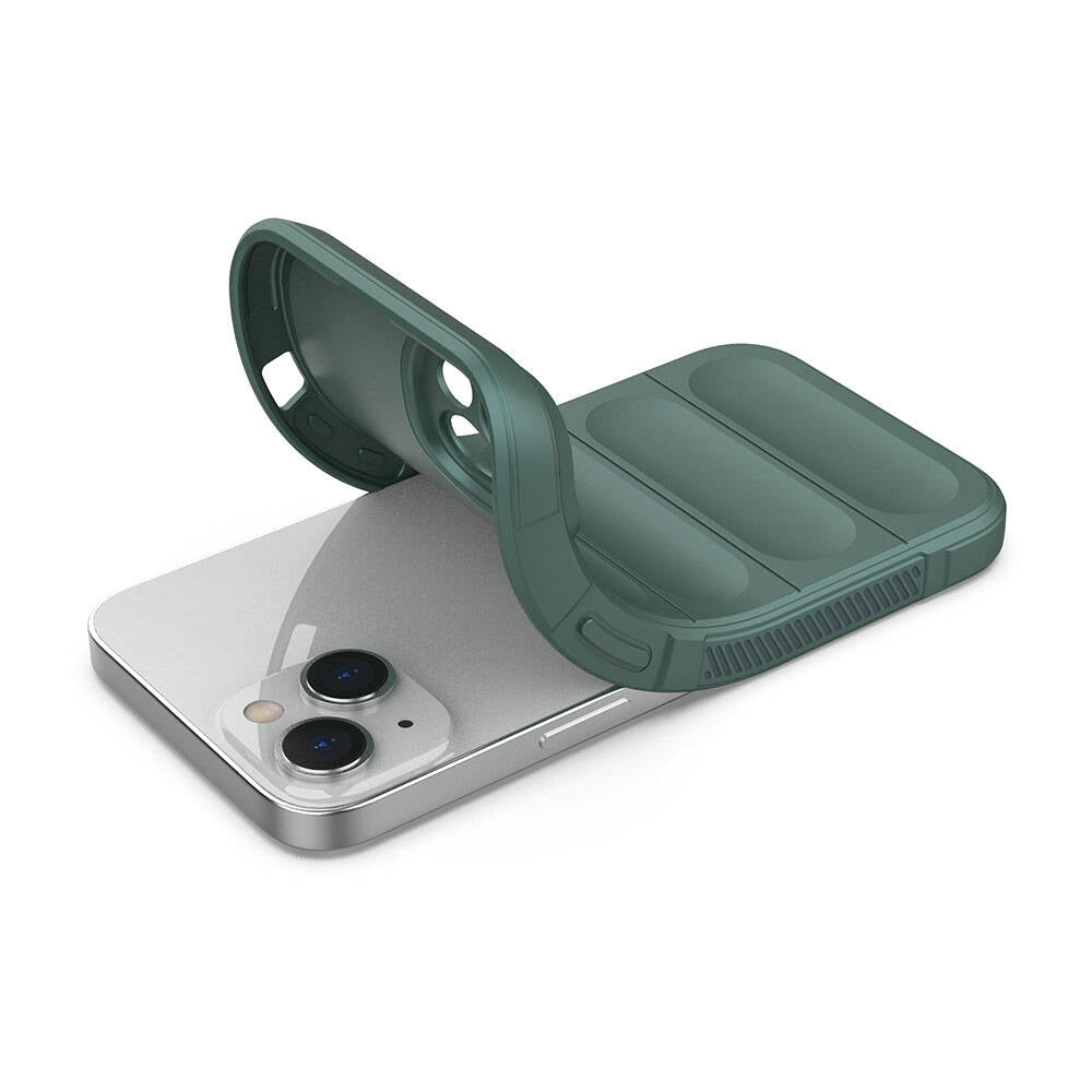 Apple iPhone 14 Kılıf Esnek TPU Oyuklu Arka Yüzey Tasarımlı Zore Etnik Silikon Kapak Koyu Yeşil