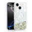 Apple iPhone 14 Kılıf Sıvılı Simli Baskılı Şeffaf Arka Yüzey Zore Mossa Silikon Kapak Gold