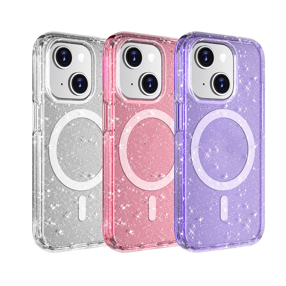 iPhone 14 Plus Kılıf Magsafe Şarj Özellikli Parlayan Simli Saydam Renkli Zore Allstar Kapak