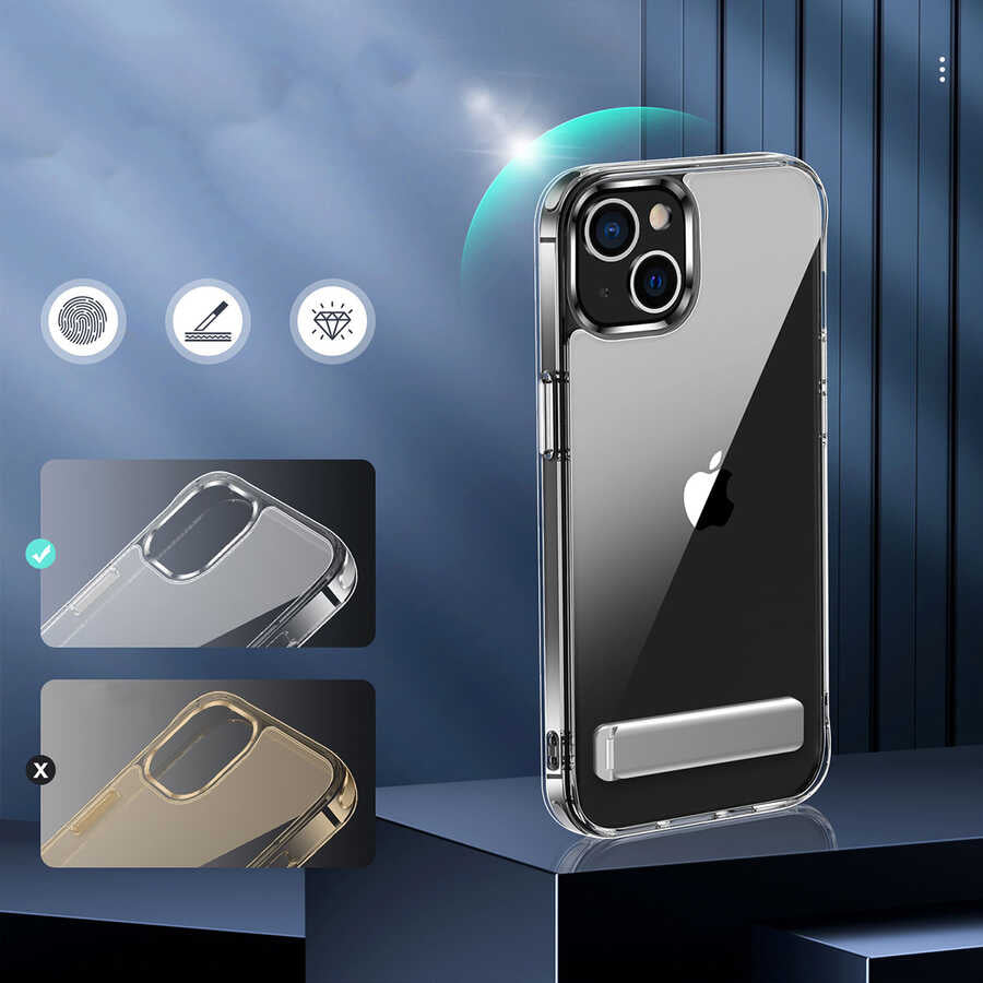Apple iPhone 14 Plus Kılıf Standlı Şeffaf Silikon Zore L-Stand Kapak Renksiz
