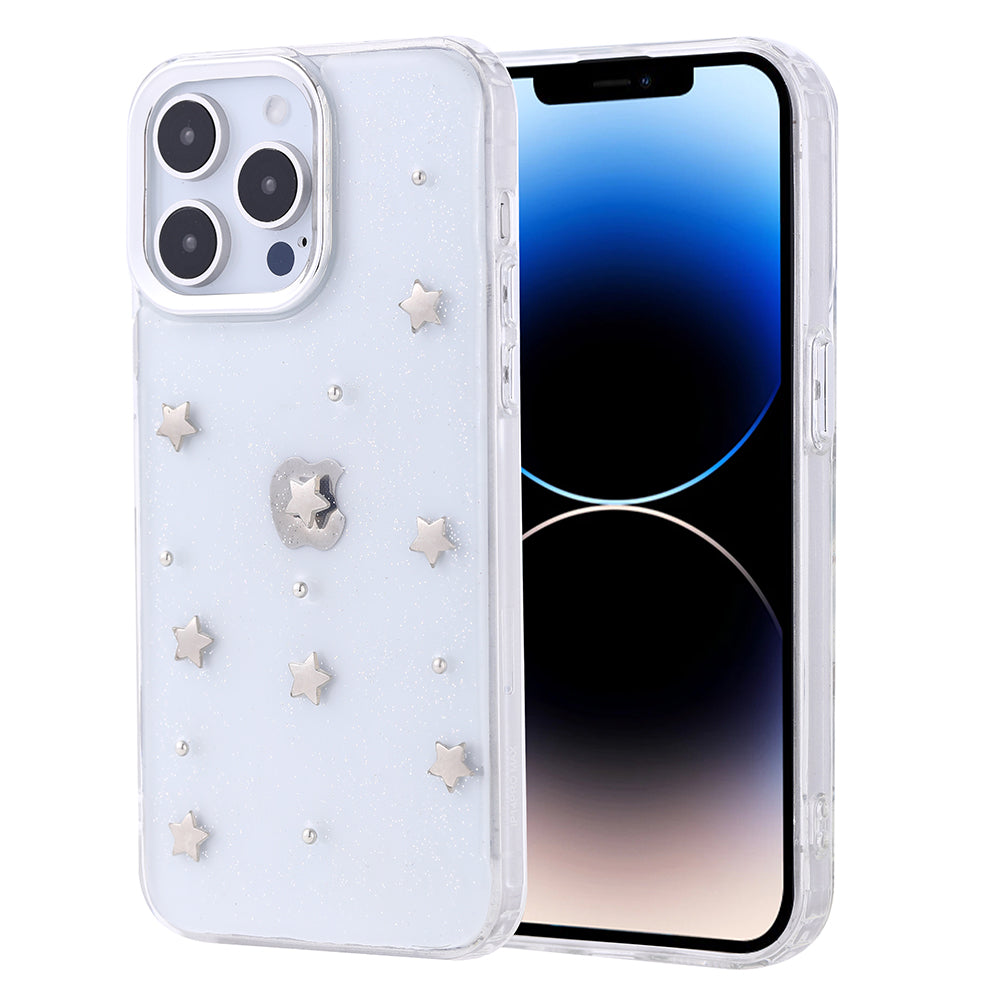 Apple iPhone 14 Pro Kılıf Airbag Tasarımlı Simli Şeffaf Zore Kutup Kapak Yıldız
