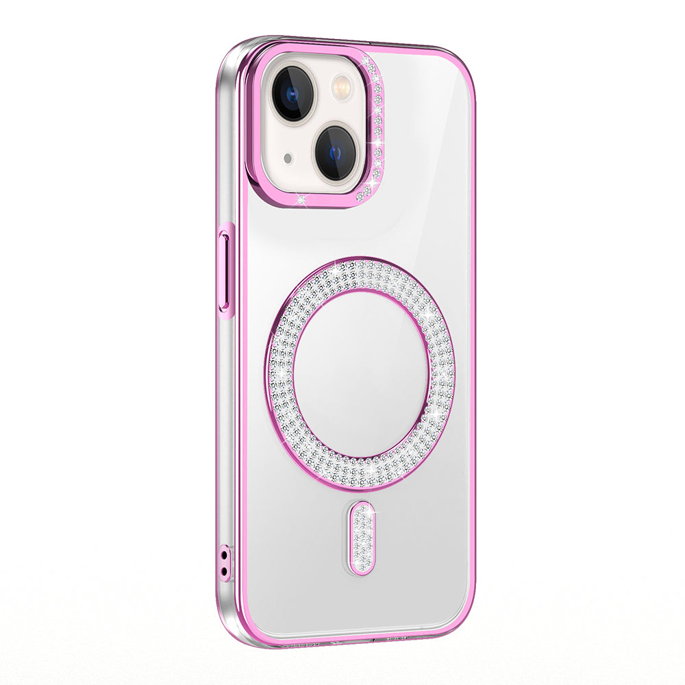 Apple iPhone 15 Kılıf Pırlanta Taş Tasarımlı M-safe Şarj Özellikli Zore Karetta Silikon Kapak Rose Gold