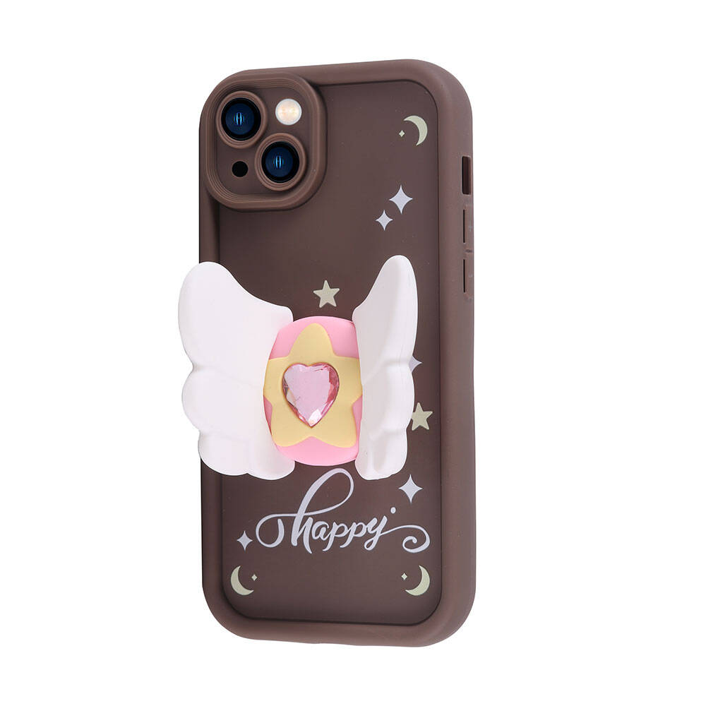 Apple iPhone 15 Plus Kılıf Kamera Korumalı Figür Tasarımlı Zore Kapya Kapak Koyu Kahve