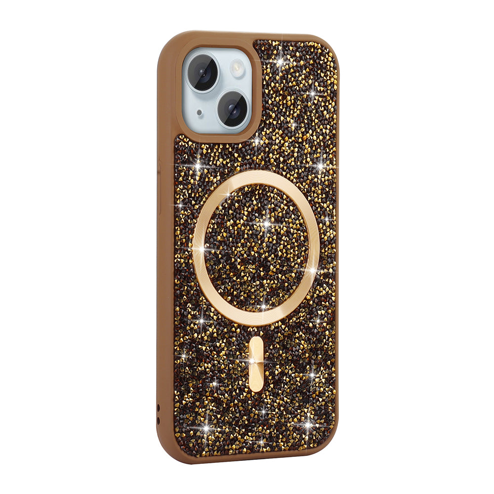 Apple iPhone 15 Plus Kılıf Pırlanta Tasarımlı M-safe Şarj Özellikli Zore Mozaik Silikon Kapak Desert Titanyum