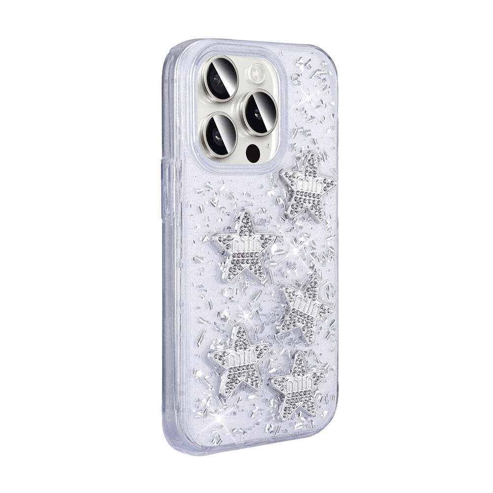 Kalp, yıldız ve fiyonk şekilleriyle birlikte simli tasarım, parıltılı şık arka yüzey yapısı.