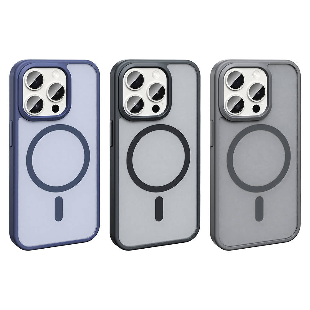 Apple iPhone 15 Pro Max Kılıf M-safe Şarj Özellikli Mat Arka Yüzey Zore Sio Kapak Lacivert