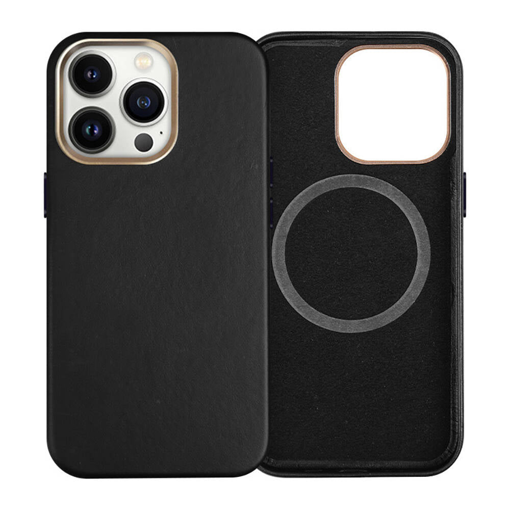 Apple iPhone 15 Pro Max Kılıf M-safe Şarj Özellikli PU Deri Zore Adora Kapak Siyah