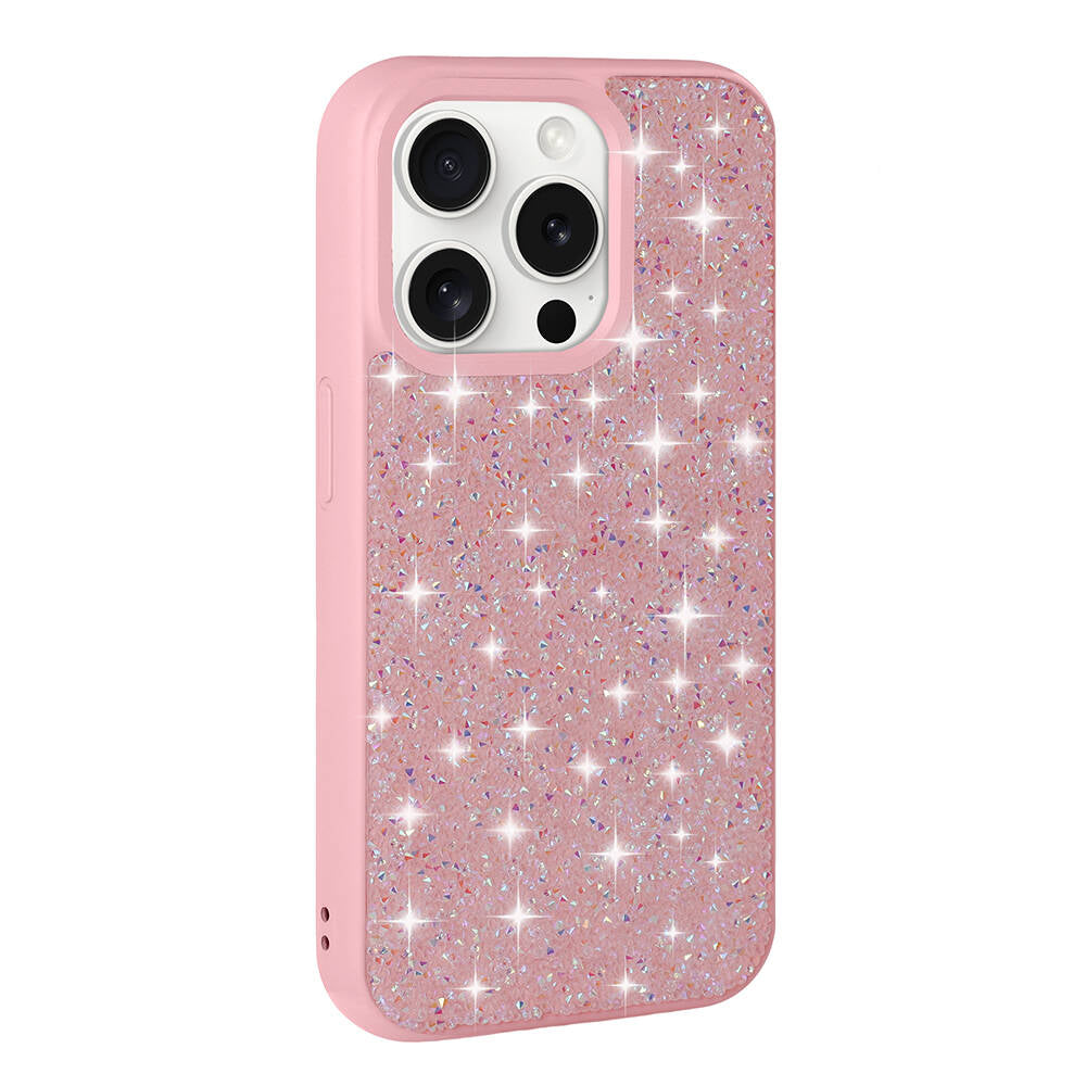 Apple iPhone 15 Pro Max Kılıf Parlak Taşlı Tasarım Zore Pırlanta Kapak Pembe