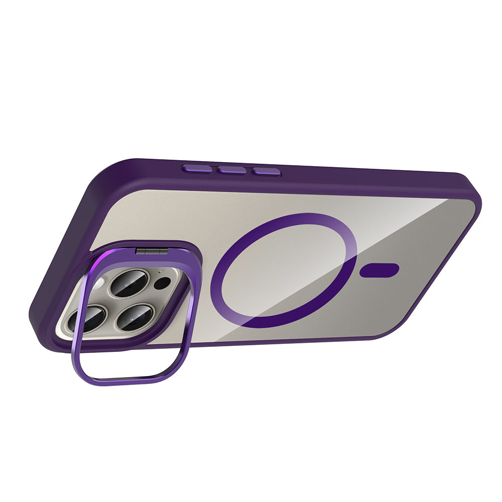 iPhone 15 Pro Max Kılıf Standlı ve Kamera Lens Hediyeli M-Safe Şarj Özellikli Zore Etro Kapak