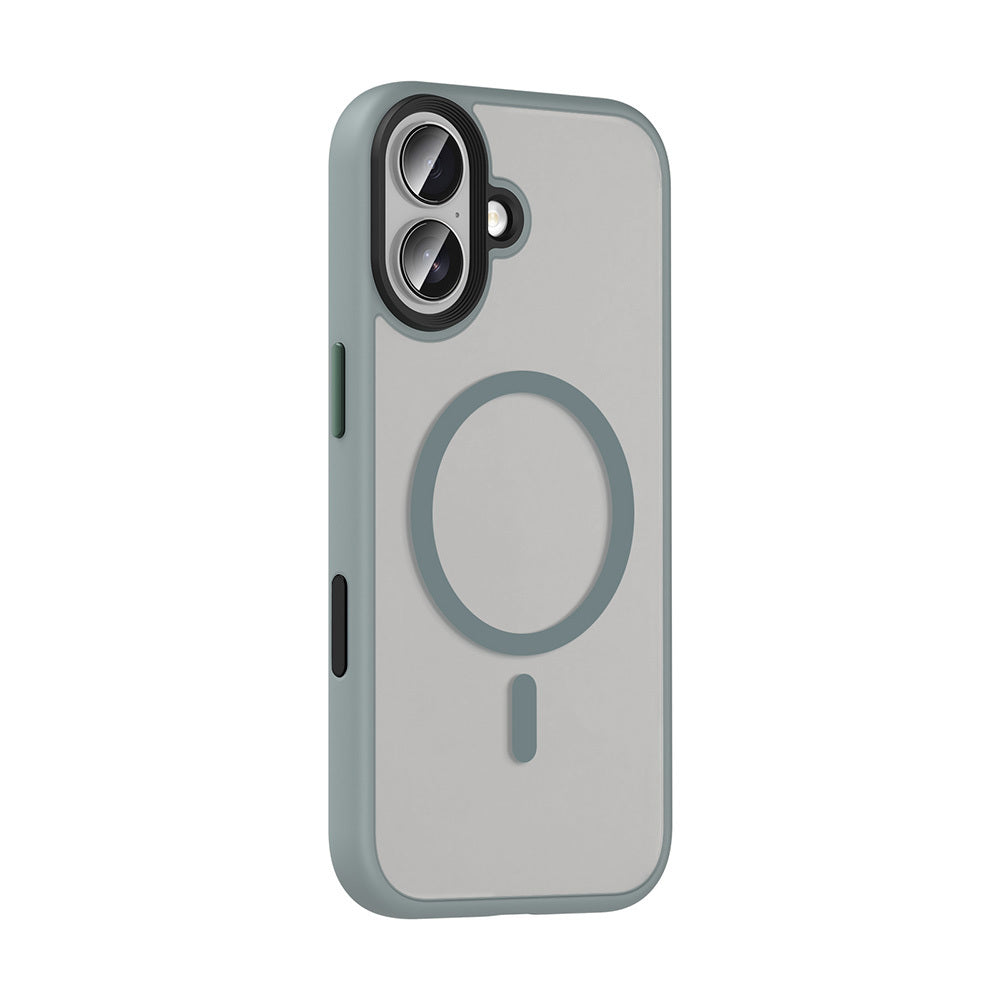Apple iPhone 17 Kılıf Mat Arka Yüzey Wireless Şarj Özellikli Zore Flet M-safe Kapak Gri