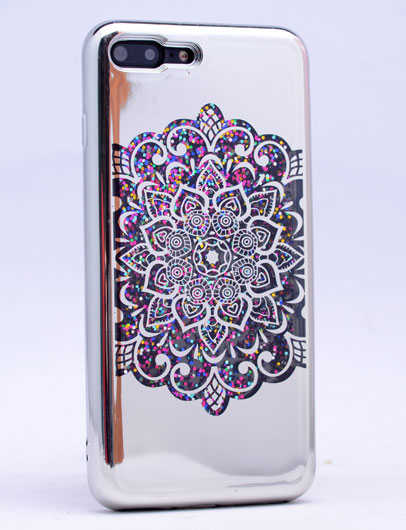 Apple iPhone 5 Kılıf Zore Lazer Çiçekli Sıvılı Silikon Gümüş