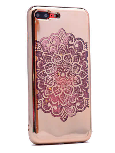 Apple iPhone 6 Plus Kılıf Zore Lazer Çiçekli Sıvılı Gold