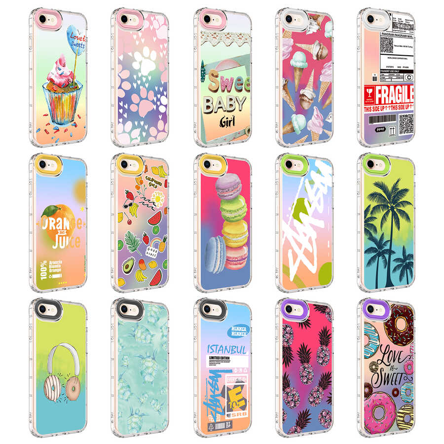 Apple iPhone 7 Kılıf Kamera Korumalı Renkli Desenli Sert Silikon Zore Korn Kapak NO7
