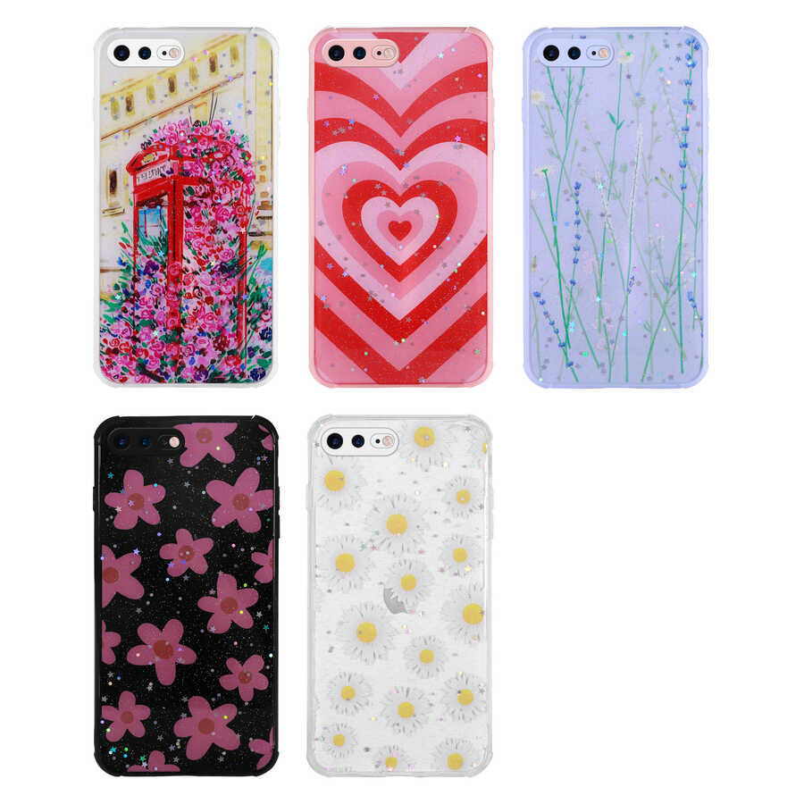 Apple iPhone 7 Plus Kılıf Simli Desenli Kamera Korumalı Parlak Zore Popy Kapak Papatya