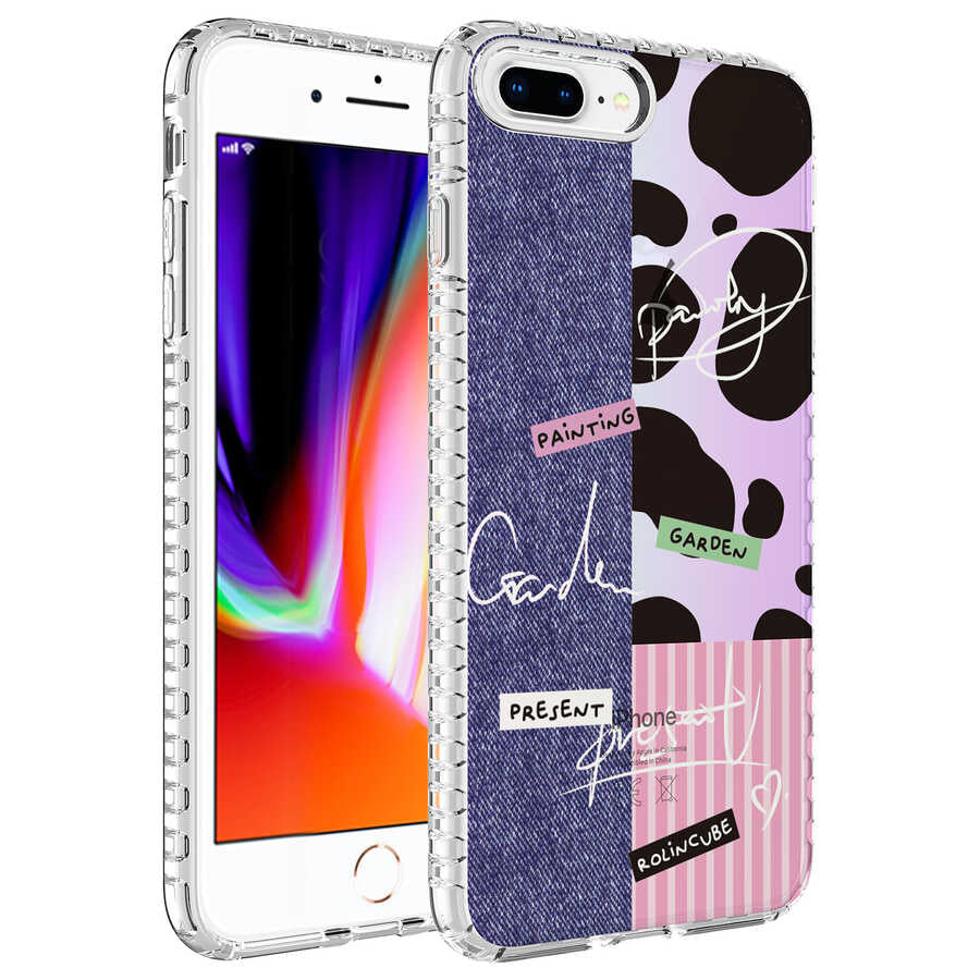 Apple iPhone 8 Plus Kılıf Airbag Kenarlı Renkli Desenli Silikon Zore Elegans Kapak NO8