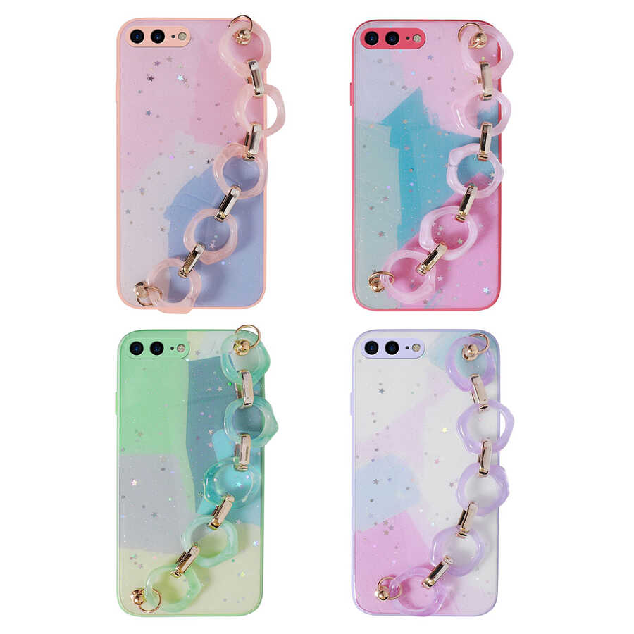 Apple iPhone 8 Plus Kılıf Simli Desenli El Askılı Tutacaklı Zore Elsa Silikon Kapak Pembe Koyu