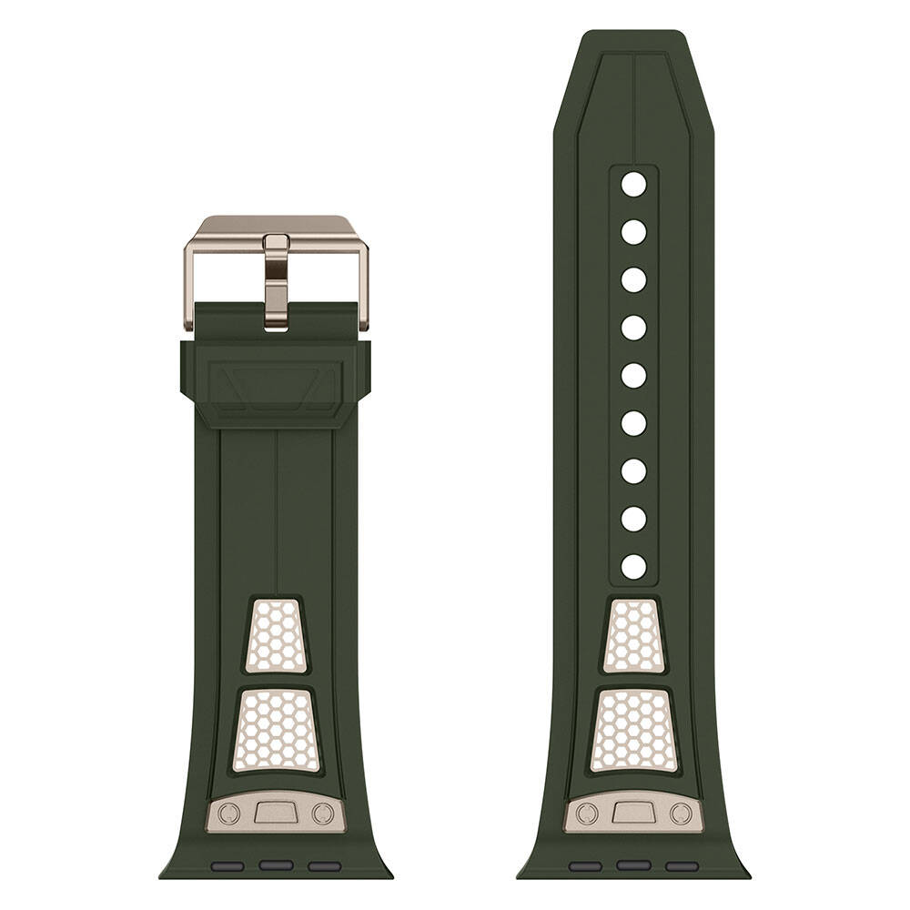 Apple Watch 42mm Zore KRD-117 Hava Alabilen Delikli Metal Süslemeli Desenli Silikon Kordon Titanyum-Yeşil