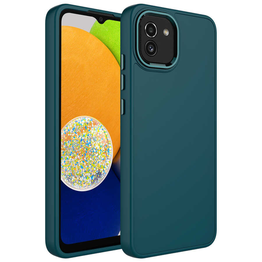 Galaxy A03 Kılıf Metal Çerçeve ve Buton Tasarımlı Silikon Zore Luna Kapak Koyu Yeşil