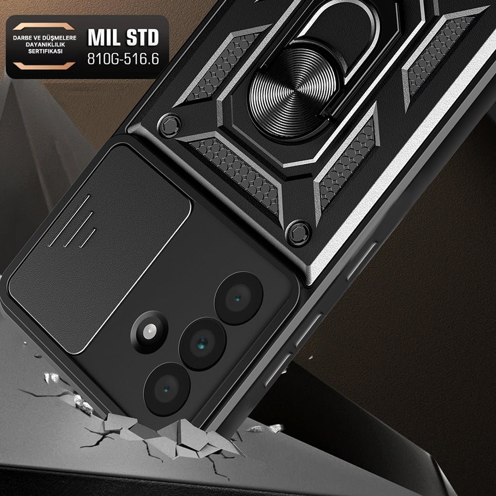 Galaxy A36 Kılıf Magnetik Standlı Kamera Korumalı Zore Sürgülü Vega Kapak Siyah
