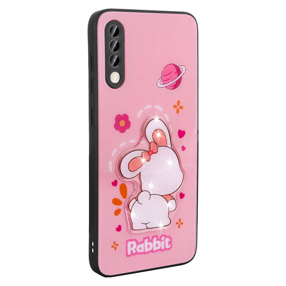 Galaxy A50 Kılıf Parlayan Kabartmalı İkonik Figürlü Zore Amas Silikon Kapak Pembe