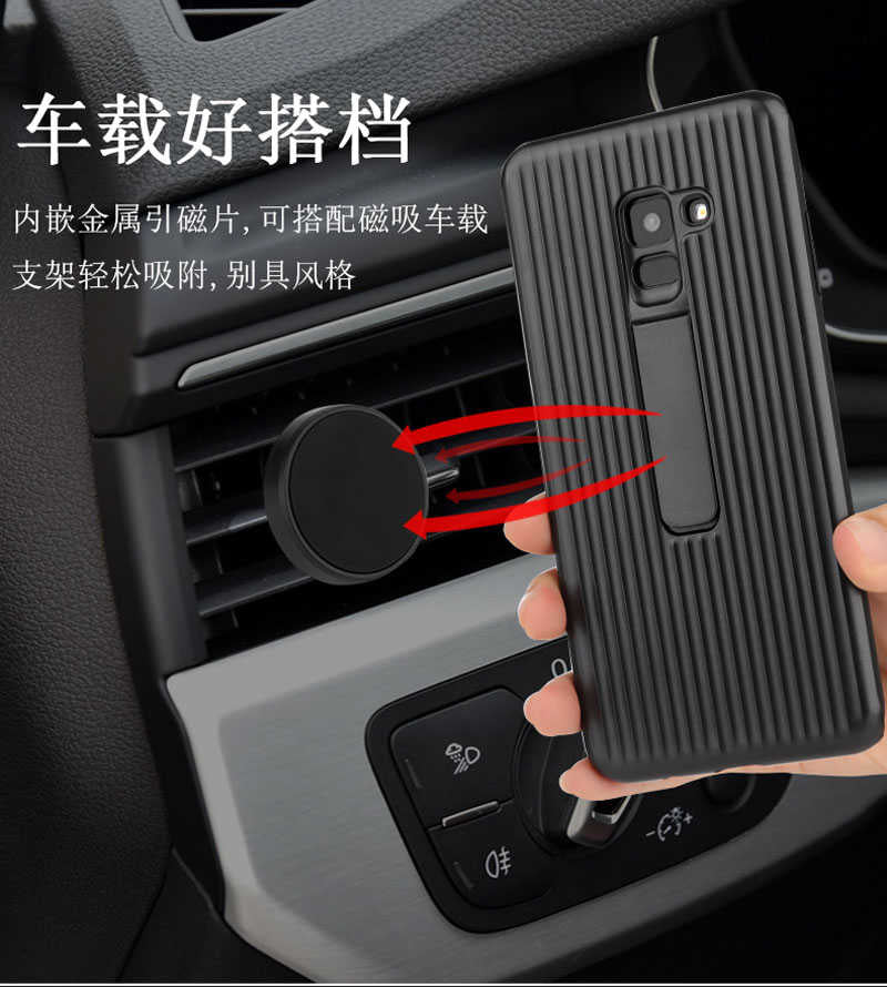 Galaxy A8 Plus 2018 Kılıf Zore Wave Standlı Mıknatıslı Kapak Lacivert