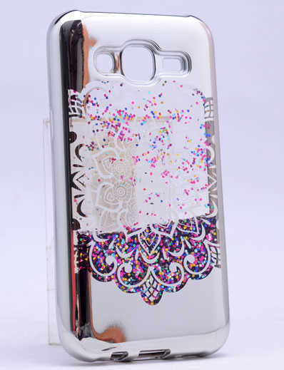 Galaxy J2 Kılıf Zore Lazer Çiçekli Sıvılı Silikon Gümüş