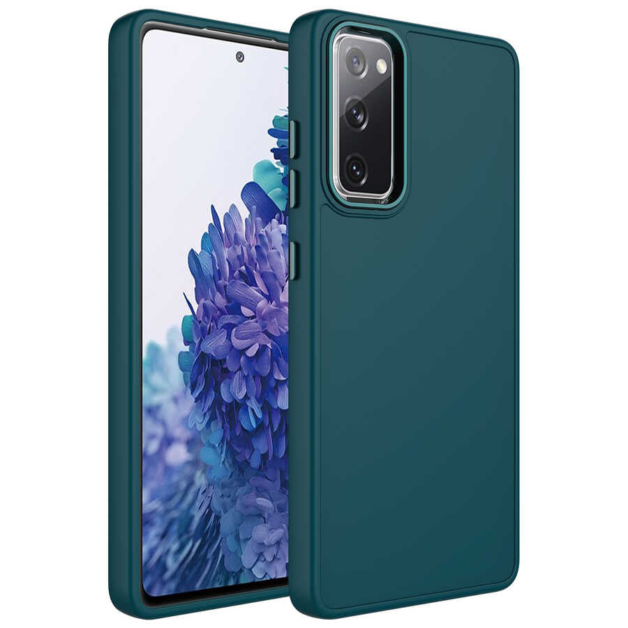 Galaxy S20 FE Kılıf Metal Çerçeve ve Buton Tasarımlı Silikon Zore Luna Kapak Koyu Yeşil