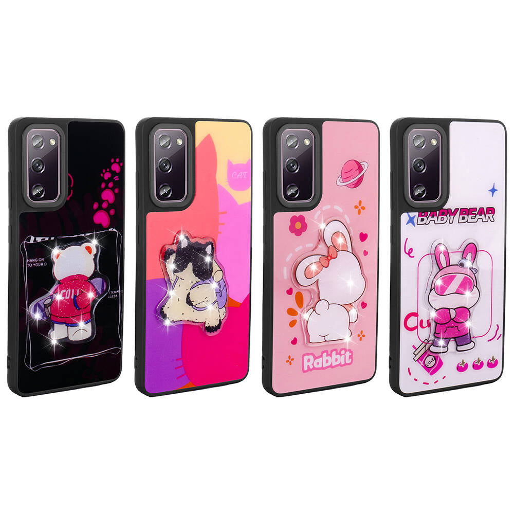 Galaxy S20 FE Kılıf Parlayan Kabartmalı İkonik Figürlü Zore Amas Silikon Kapak Siyah
