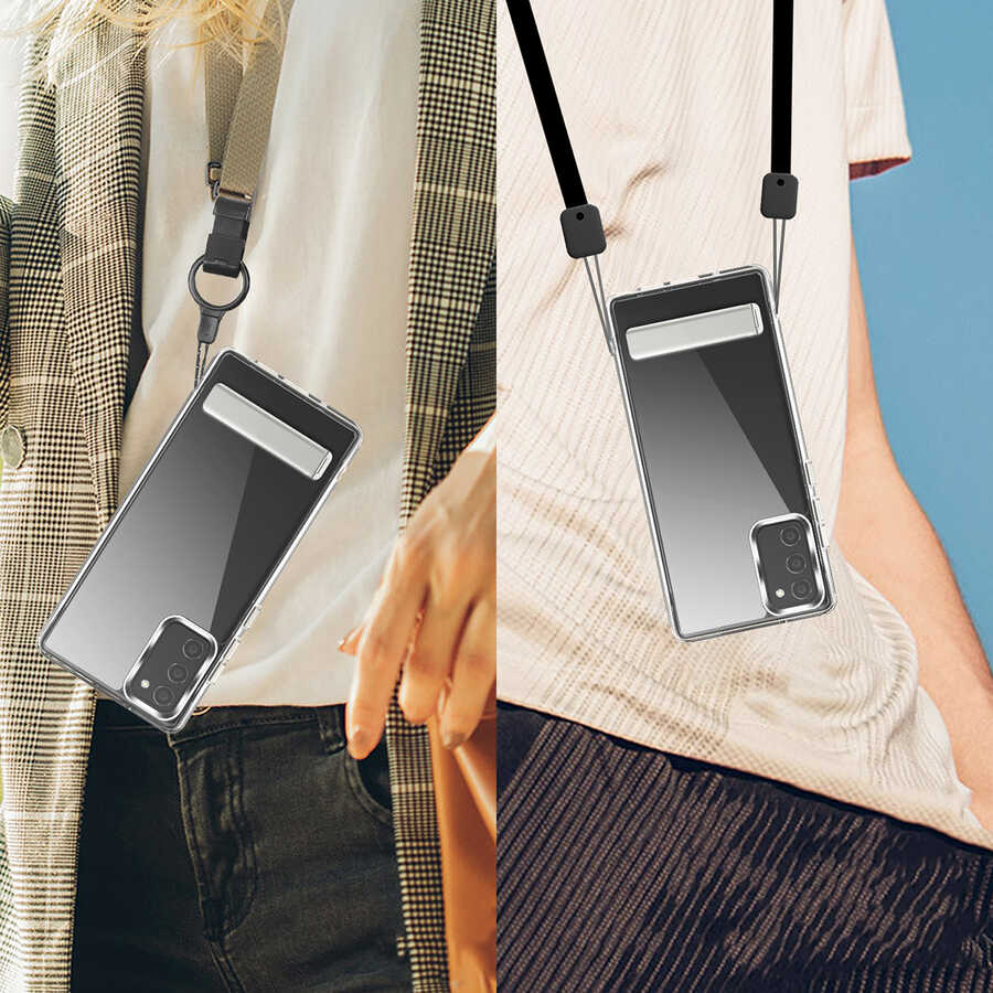 Galaxy S20 FE Kılıf Standlı Şeffaf Silikon Zore L-Stand Kapak Renksiz