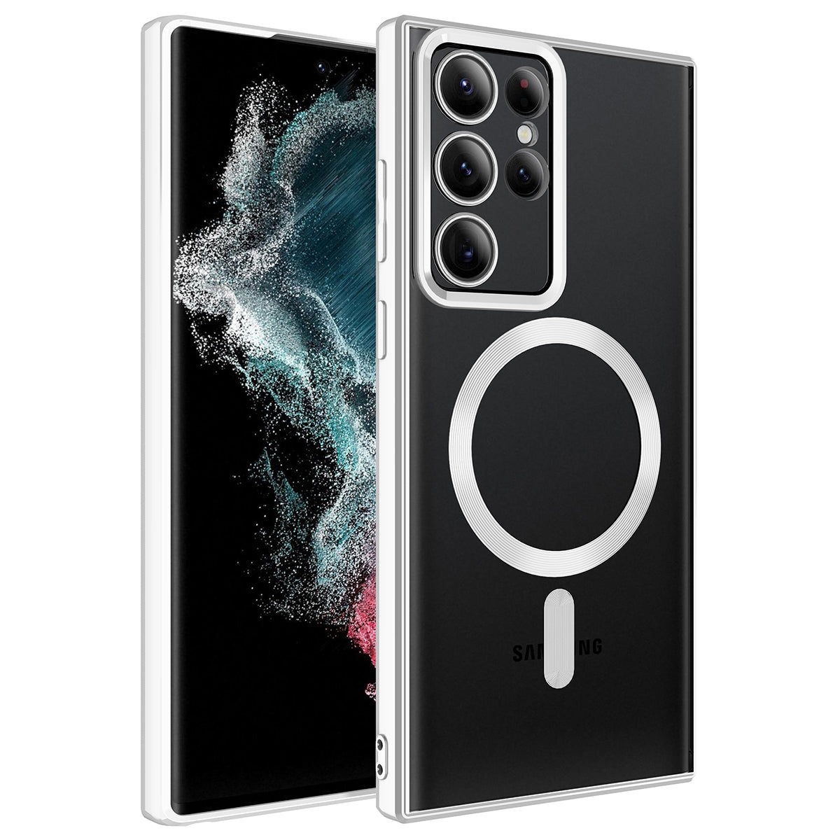 Galaxy S22 Ultra Kılıf M-safe Wireless Şarj Özellikli Zore Setro Silikon Gümüş