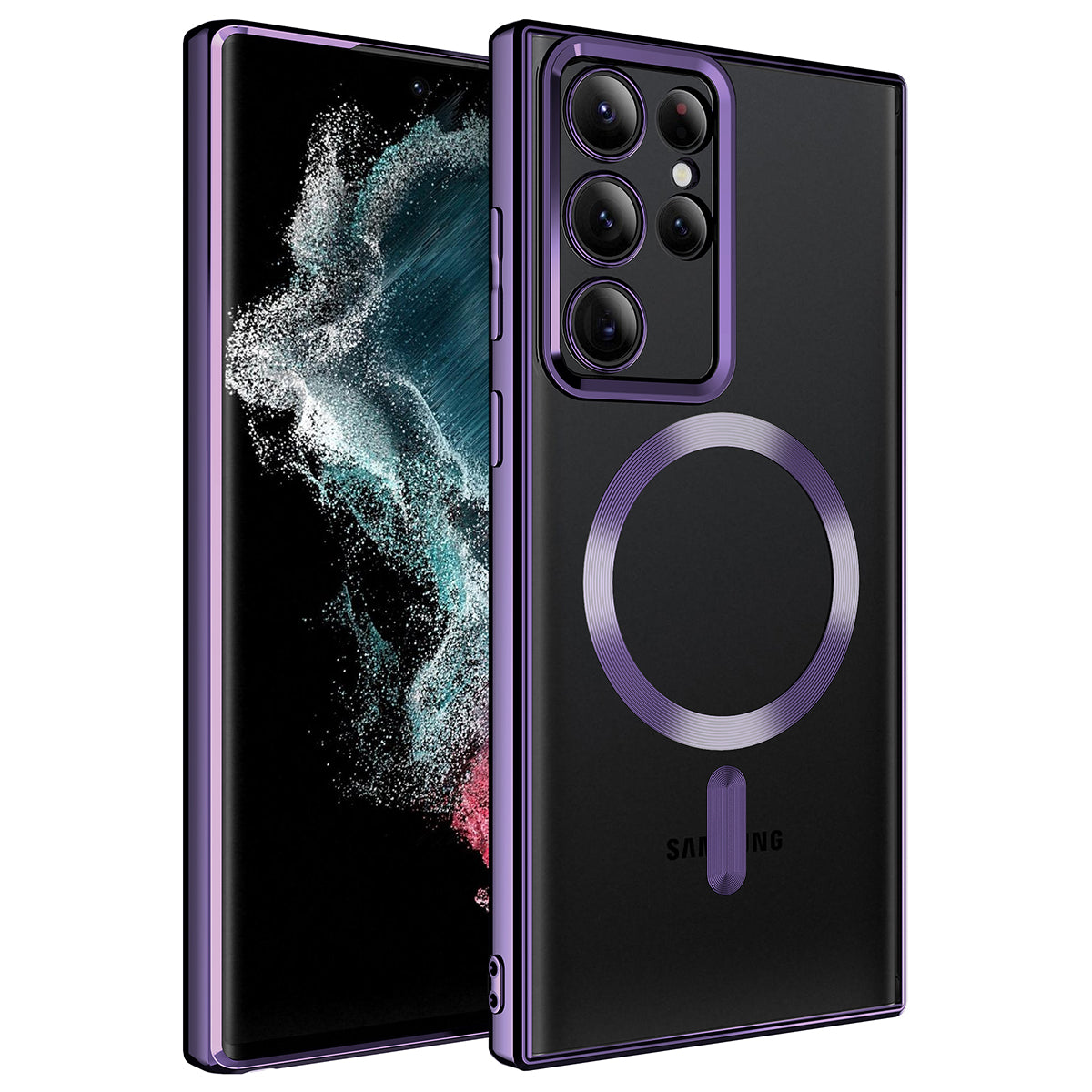 Galaxy S22 Ultra Kılıf M-safe Wireless Şarj Özellikli Zore Setro Silikon Derin Mor