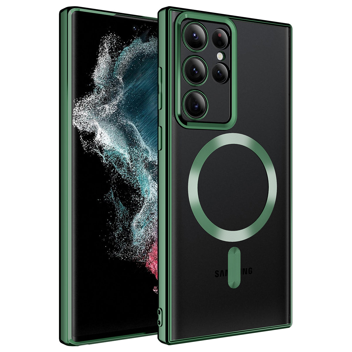 Galaxy S22 Ultra Kılıf M-safe Wireless Şarj Özellikli Zore Setro Silikon Koyu Yeşil