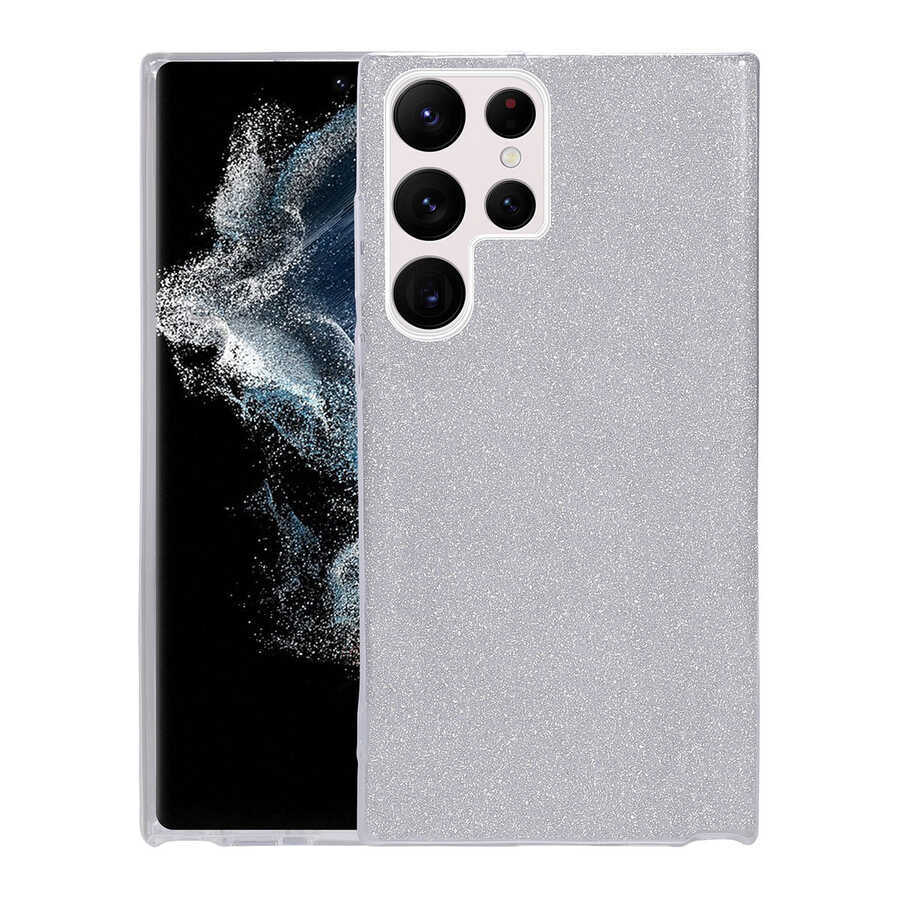 Galaxy S22 Ultra Kılıf Zore Shining Silikon Gümüş