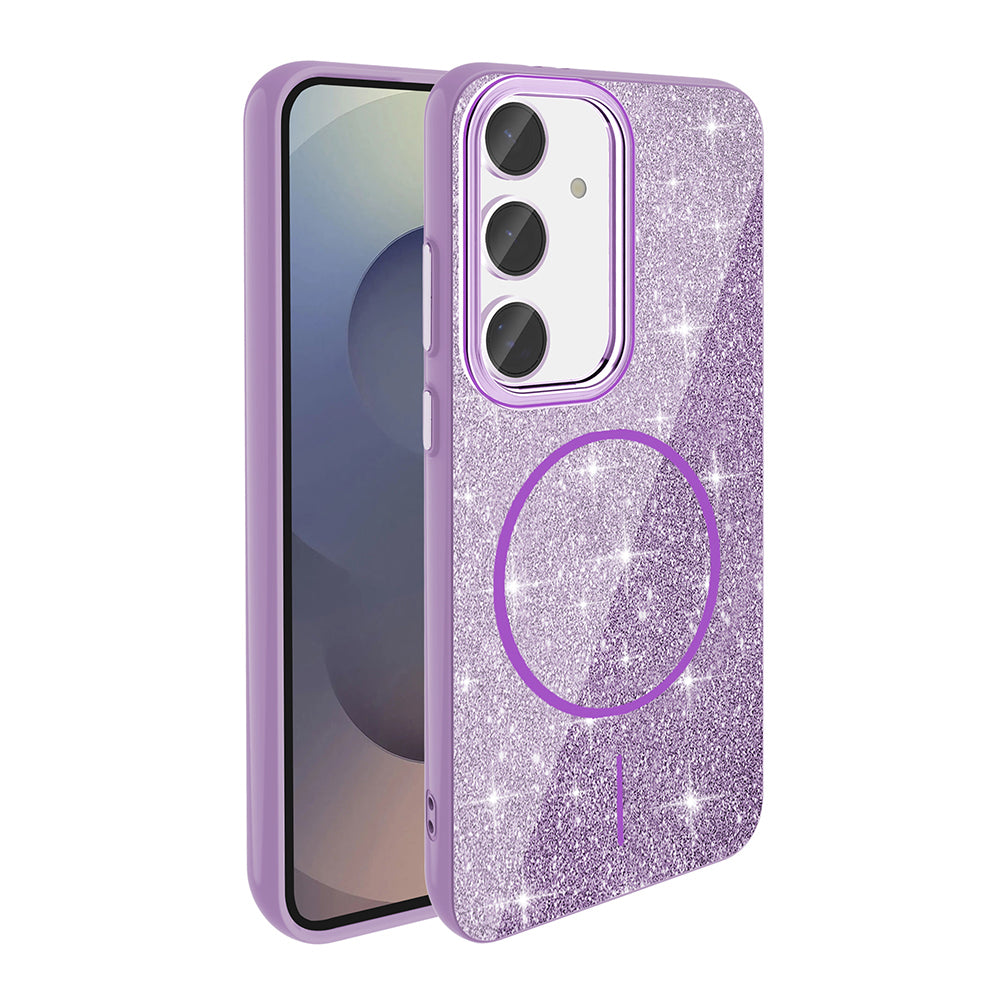 Galaxy S23 FE Kılıf M-safe Şarj Özellikli Parlayan Simli Zore Okso Kapak Derin Mor