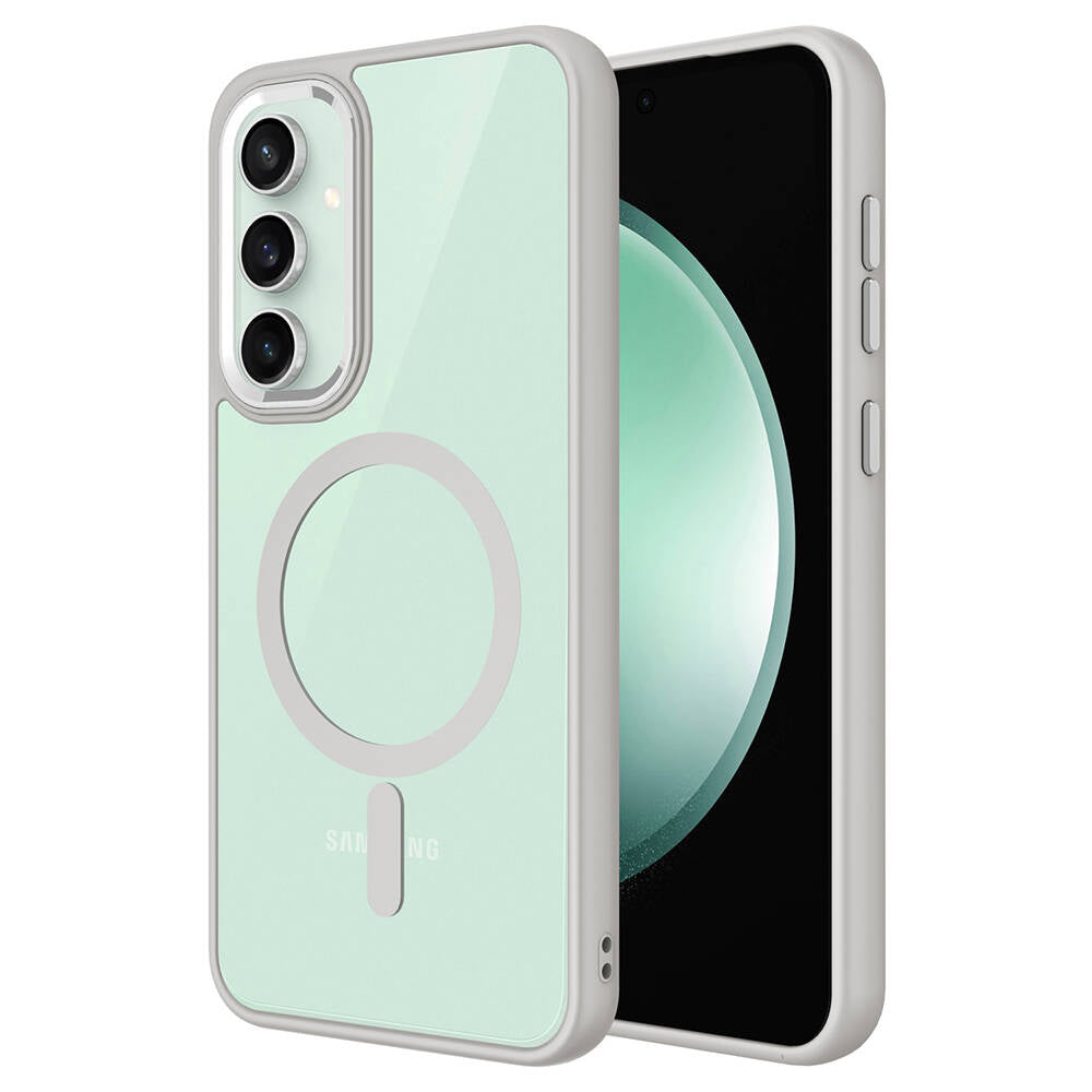Galaxy S23 FE Kılıf Wireless Şarj Özellikli Zore Krom M-safe Silikon Kapak Gri