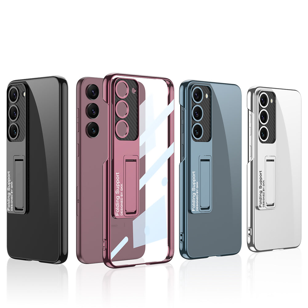 Galaxy S23 Kılıf Kamera Korumalı Şeffaf Tasarımlı Zore Lego Standlı Kapak Mürdüm